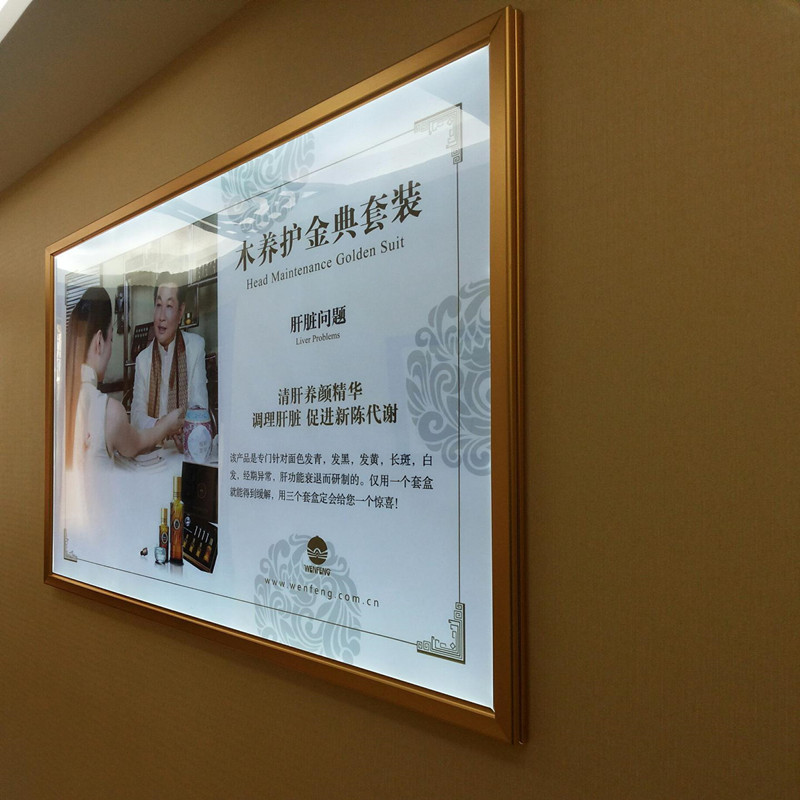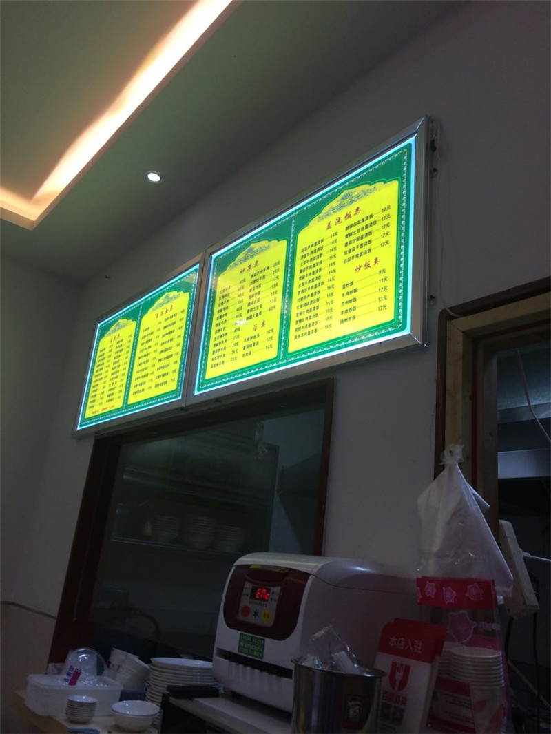 LED超薄灯箱,采用铝合金边框、超亮LED光源,加上高清PET灯片UV喷绘,安装方便,换画面内容简便,省电、耐用。